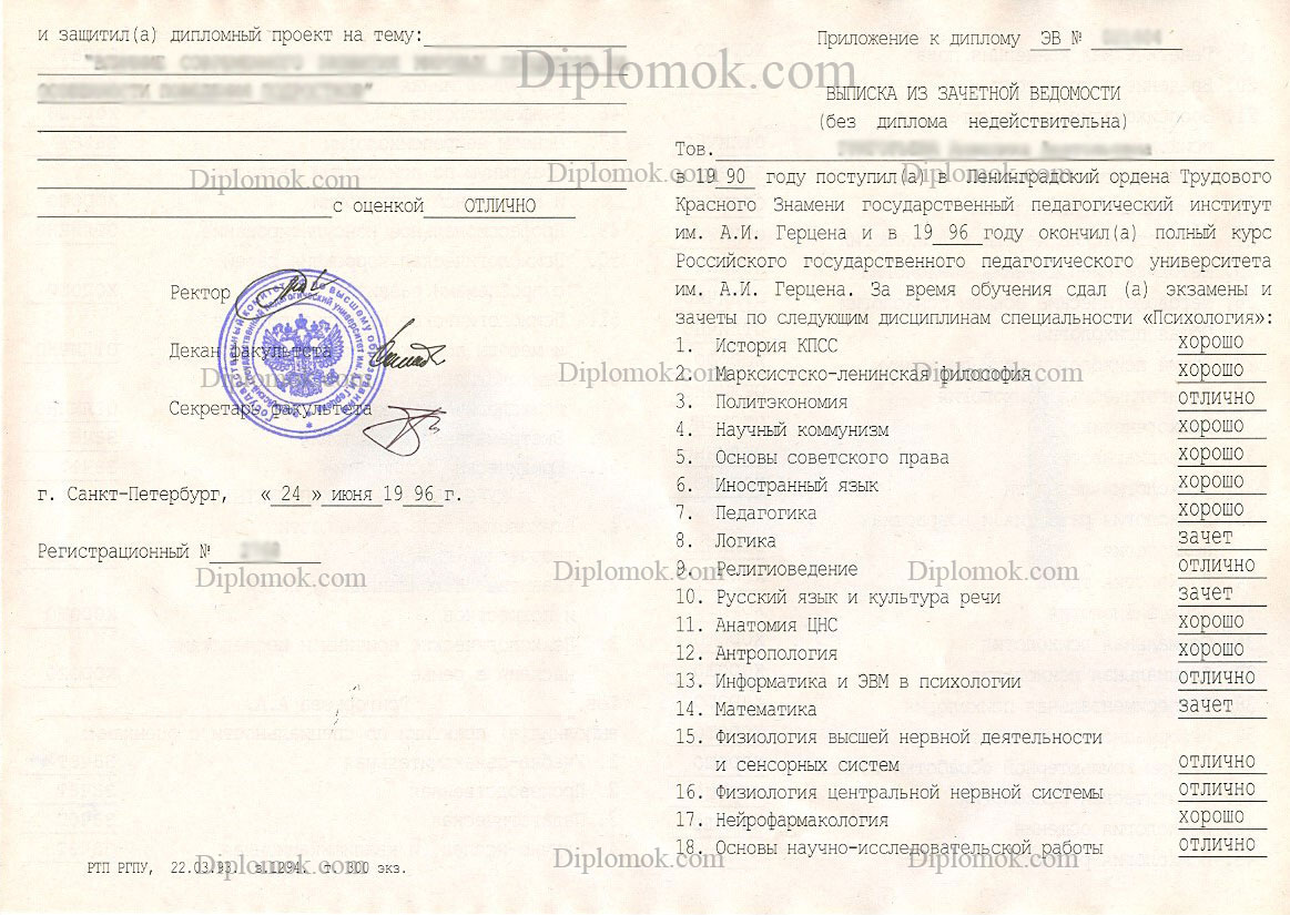 Дипломы СССР о высшем образовании, оформляемые нами, невозможно отличить от оригинала. Использование официальных бланков, проставление всех требуемых учебных программ, подписей и печатей гарантирует, что ни один человек, у которого в руках окажется данный документ, не усомнится в его подлинности. Купить диплом о высшем образовании СССР старого образца у нас – верное решение. Специализированный сайт обеспечивает конфиденциальность заключение сделки, оперативность создания и доставки бумаг, а также предлагает документы по доступной цене. Покупка диплома обойдется Вам в разы дешевле, чем обучение в университете, к тому же Вы сэкономите несколько лет своей жизни, которые можно потратить на построение карьеры.