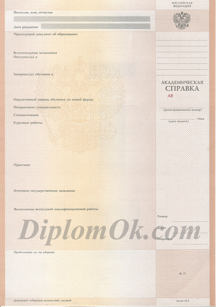 Приложение к диплому 2014-2026 года, ГОЗНАК, ПОДРОБНЕЕ | 15000 ₽ | Заказ |